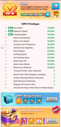 • Additionally, there is an option to purchase extra VIP points to expedite your progression and unlock privileges sooner.