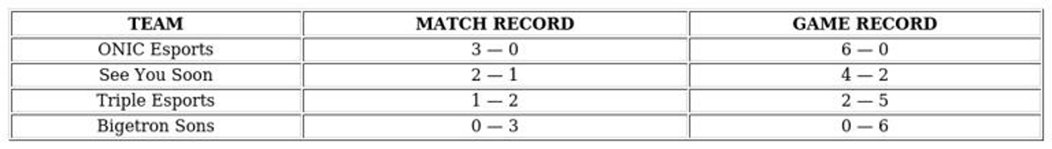 Meanwhile, Geek Fam Indonesia and See You Soon have been knocked out of the tournament.
