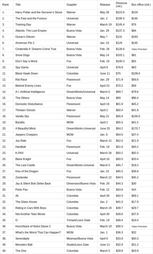 Based on the latest sales data from VSDA, VidTrac, and Studio reports, the top video titles for mid-2002 have seen significant shifts in consumer preferences. Popular releases include a mix of blockbuster films and critically acclaimed titles that have captivated audiences worldwide. Market trends indicate a growing interest in both high-budget productions and independent films, reflecting diverse viewing tastes. Sales figures suggest that certain genres, such as action and comedy, continue to dominate the charts, while new entries are steadily gaining traction among viewers. Overall, the video market remains dynamic, with fluctuations influenced by seasonal releases and promotional strategies.