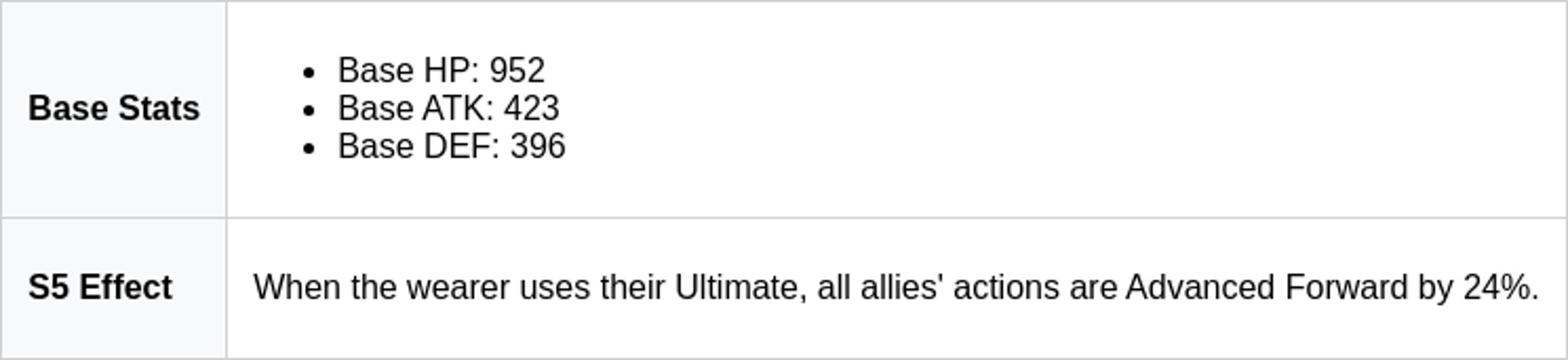 In summary, this Light Cone offers substantial supportive utility for the team and personal stats for Tribbie.