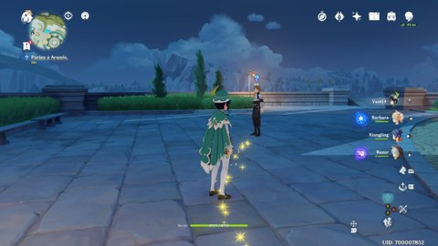 Commencez par vous rendre au point de téléportation situé au cœur de la ville, juste à côté de la fontaine principale.