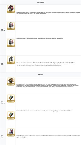 Alternatively, if you want Tangtang to focus on enhancing team abilities, the Frontiers gear set is a solid choice.