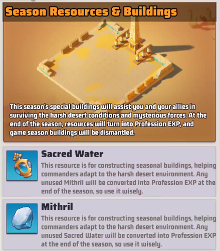 - Season 3: Mithril remains important but is more abundant in specific desert veins; Sacred Water appears as a new, contested resource that influences movement and unit sustain.