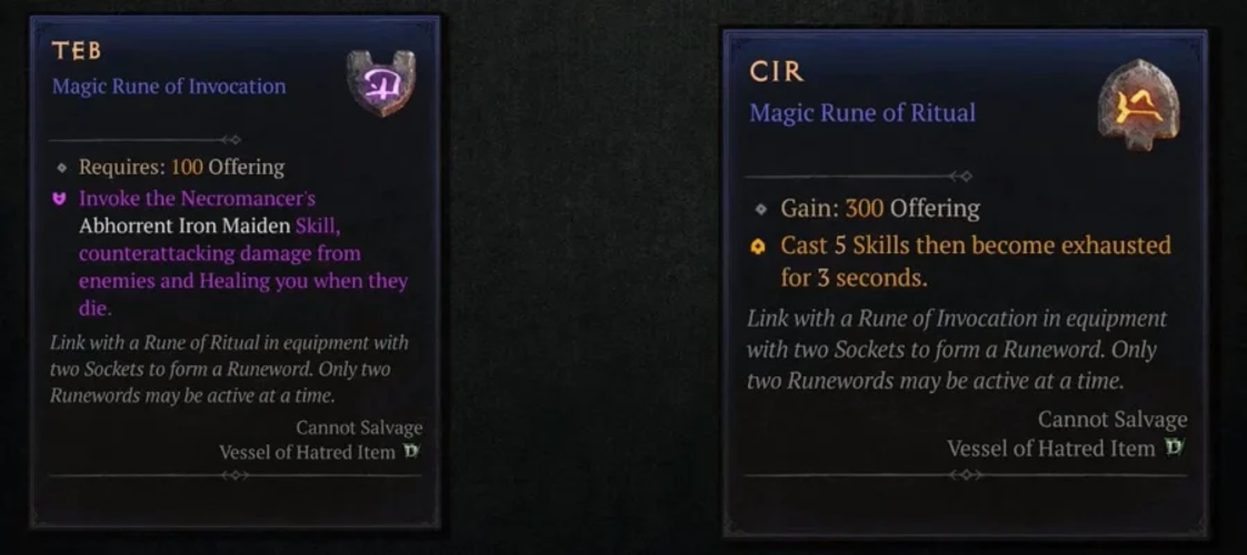 - Indira’s Memory (pants): Blood Wave triggers a Bone Prison on enemies hit; Bone Spear becomes a blood skill and, after hitting, consumes a nearby corpse to launch an additional Bone Spear while draining 10% maximum life per cast.