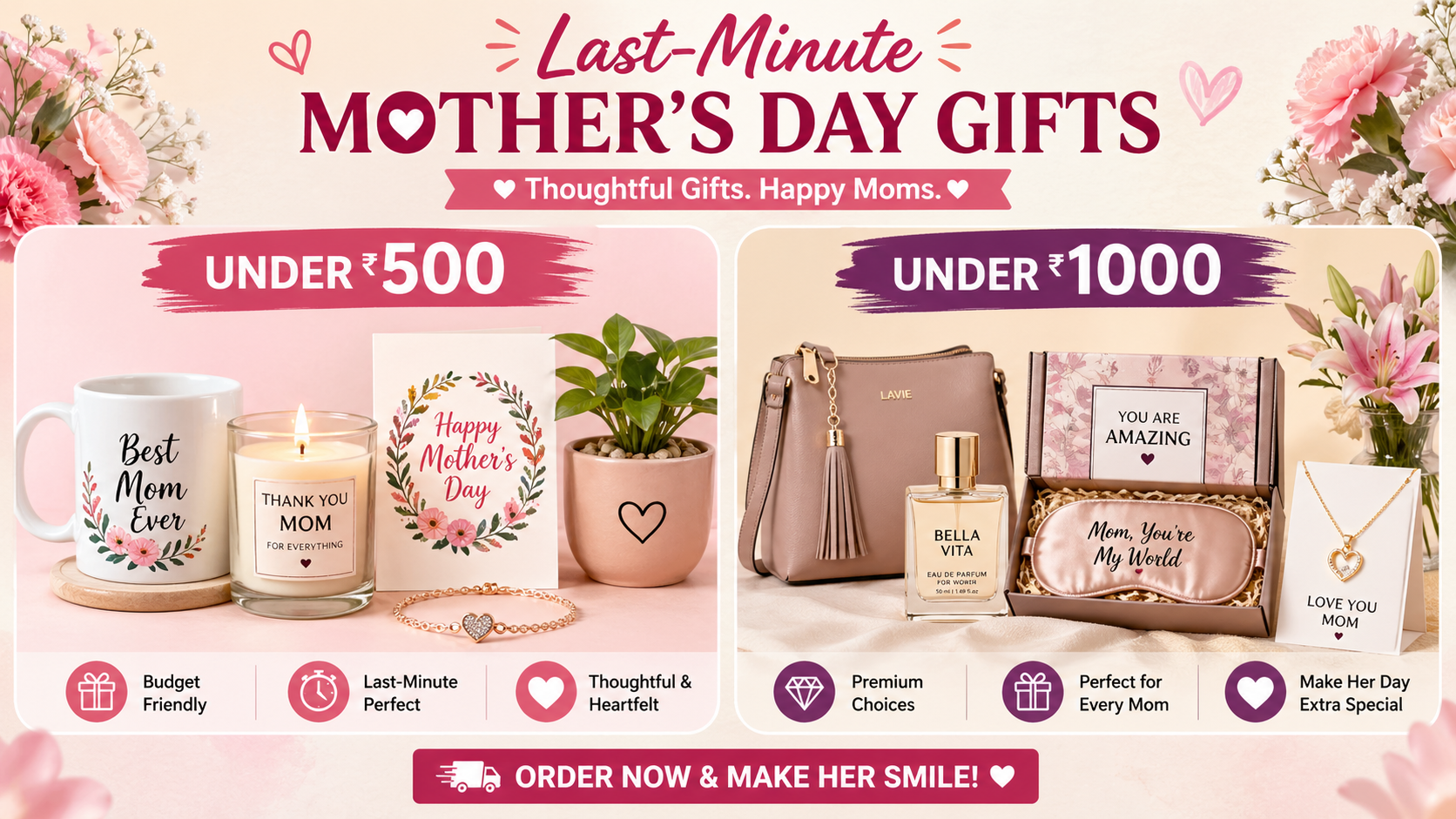 Last-Minute Mothers Day Gifts Under 500 & Mothers Day Gifts Under 1000
