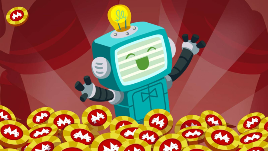 Collecting tokens is your first step in this pachinko-style challenge, featuring the iconic Mr. Monopoly robot.
